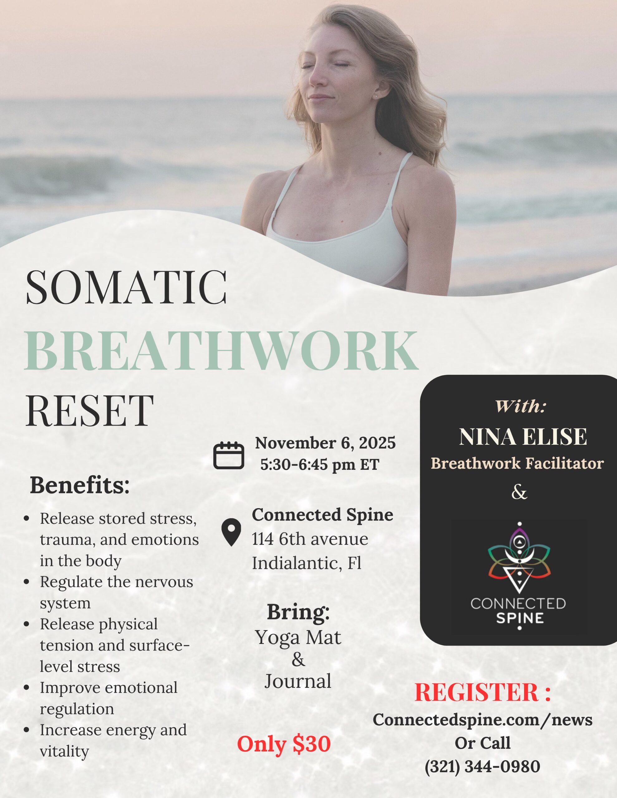 Welcome to Connected Spine, your Indialantic sanctuary for whole-person healing and vibrant transformation. Dr. Suzanne McBride blends science and soul to create a wellness space where your nervous system, energy field, and physical body can fully reset and upgrade — helping you feel, move, think, and sleep better!
