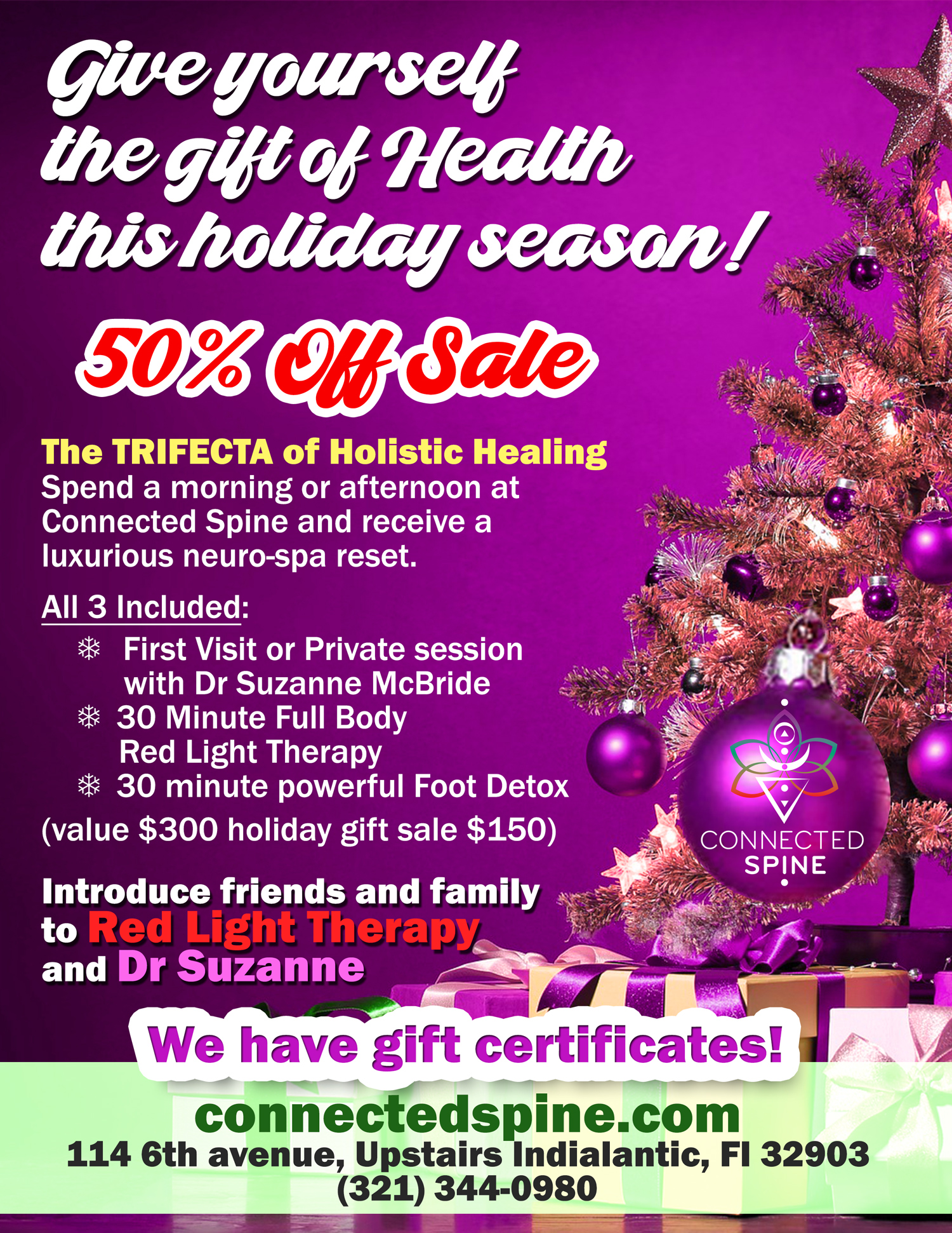 Christmas Special 50% Off:THE TRIFECTA of holistic healingSpend a morning or afternoon at Connected Spine and receive a luxurious neuro-spa reset. All...